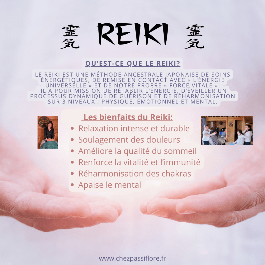 Le Reiki est une méthode de soin énergétique japonnais de remise en contact avec « l’énergie universelle » et de notre propre « force vitale ». Elle a été révélée en 1922 par Mikao Usui Sensei et s’est perpétuée à travers le monde entier jusqu’à l’Occident. Le Reiki fait désormais partie des médecines douces comme l’énergétique chinoise, la sophrologie, l’ostéopathie…